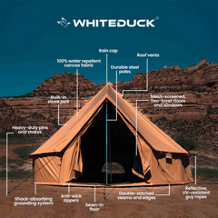 Gefertigt aus feuer und wasserabweisendem DYNATEK Canvas bietet das Zelt hervorragenden Schutz bei widrigen Wetterbedingungen. Das Material ist speziell behandelt um hohe Widerstandsfähigkeit gegen Nässe Funkenflug und Hitze zu gewährleisten. Doppelt vernähte Nähte und verstärkte Ecken sorgen für zusätzliche Stabilität und Langlebigkeit.