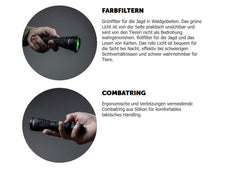 Predator Pro Extended Set ist die anwendungsbereite Lösung für die effektive Nutzung auf der Jagd. Das Set enthält die taktische Taschenlampe Predator Pro mit großer Leuchtweite und magnetischer Aufladung sowie die besten Zubehörteile.