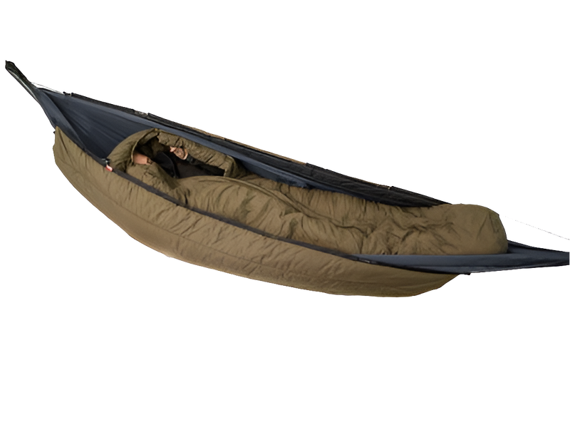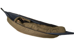 Durch seine Schnittführung passt er sich der konvexen Form des Hängemattenschläfers an. Zusätzlich ist er mittels Gummikordelzügen justierbar und liegt so perfekt am Körper an. Durch die vielseitigen Anpassungsmöglichkeiten ist er auf allen gängigen Single Outdoorhängematten kombinierbar.