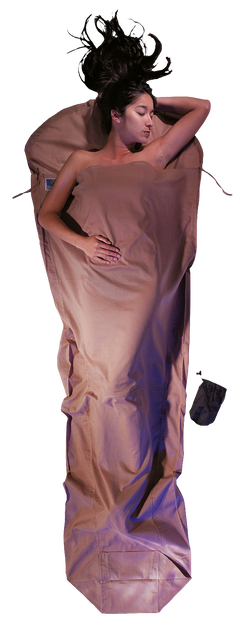 Extrem leichter, mumienförmiger Innenschlafsack zum Schutz des Schlafsackes vor Verschmutzung und zur Erhöhung seiner Wärmeleistung. Ausführung: Kopfteil zu einer Kapuze zusammenziehbar; weite Einstiegsöffnung; speziell genähter Fußteil; Doppelnähte