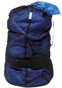Schlafsack-Aufbewahrungsbeutel aus Mesh mit Nylonboden, Schnürzug und Kordelstopper.