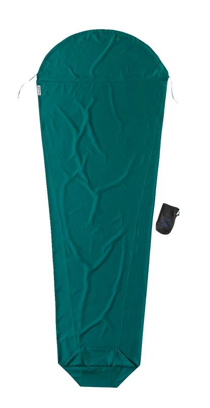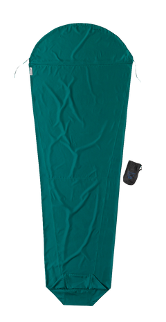 Extrem leichter, mumienförmiger Innenschlafsack zum Schutz des Schlafsackes vor Verschmutzung und zur Erhöhung seiner Wärmeleistung. Ausführung: Kopfteil zu einer Kapuze zusammenziehbar; weite Einstiegsöffnung; speziell genähter Fußteil; Doppelnähte