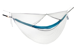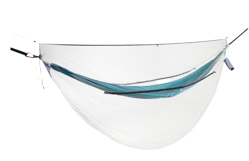 Superleichtes Moskitonetz für Single Size Hängematten. Auf beiden Seiten mit YKK Zippern zur Belüftung zu öffnen. Tie Out Loops zum seitlichen Wegspannen des Netzes für mehr Bewegungsfreiheit. Integrierte Ridgeline an der Oberseite, einfach mit LineLocs abspann- und verstellbar.