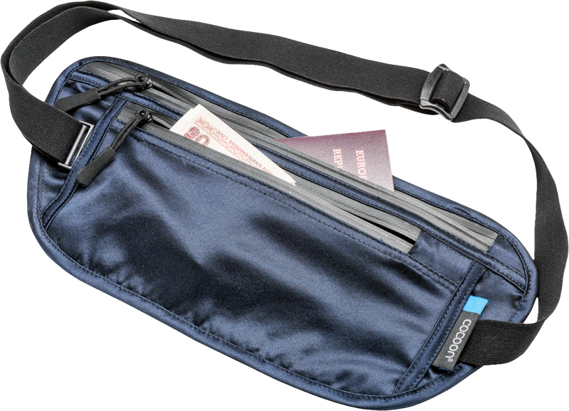 Weiche Hüfttasche für Geld und Dokumente aus 100% Seide mit wasserdichter TPU Innenlaminierung. Schützt Pass, Führerschein und Geld vor Diebstahl, Schweiß und Wasser. Zwei Taschen mit YKK Aqua Guard Water Repellent Zipper. Verstellbare, elastische Gurte. RFID sicher.