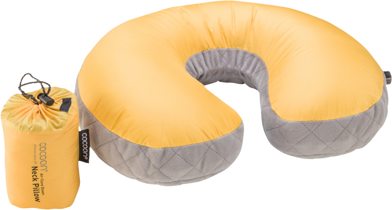 Superleichtes Nackenkissen mit aufblasbarem, austauschbarem Luftkern und hydrophober Daunenfüllung. Die Hülle des Kissens hat einen Zipper (zum Austauschen der Blase) und ist auf der einen Seite aus kühlem 15 Denier Polyester, auf der anderen aus weicher, warmer Mikrofaser.