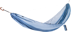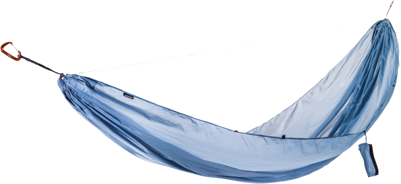 Ultraleichte Hängematte aus starkem 20 Denier Hexagonal Ripstop Nylon mit superstarken Vierfachnähten. Eine high-tech UHMW-PE Ridgeline ermöglicht einen gleichbleibend optimalen Aufhängewinkel und eine optimale, diagonale Liegeposition. Zwei 12 KN Aluminium Karabiner inklusive.