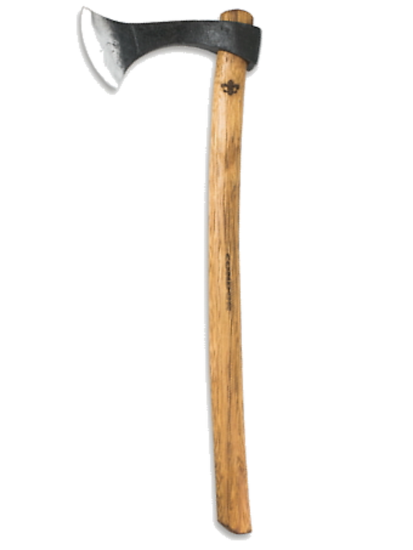 Die traditionell gefertigte Franciska Throwing Axe von Condor ist eine Hommage an die berüchtigte und gefürchtete Wurf-Axt „Franziska“ der alten Franken. Die schmiederauen Seiten des geschwungene Kopfes aus 1060-Kohlenstoffstahl sind ebenso authentisch wie der leicht gebogene kurze Stil aus geflammtem amerikanischem Hickory. Für einen verzugfreien Wurf hat der Stil keinen Knauf und keine Fangriemenöse. Eine handgemachte Lederscheide rundet die Gesamterscheinung ab.