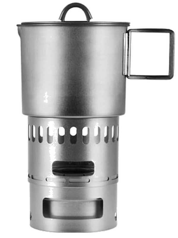 Das Ti Appalachian Set beinhaltet einem 500 ml ultraleichte Topf [ECA 266] + Spiritusbrenner + Topfständer + Windschutz. Der Kocher wurde für Becher der Grösse 500ml und 900ml Ti entwickelt.