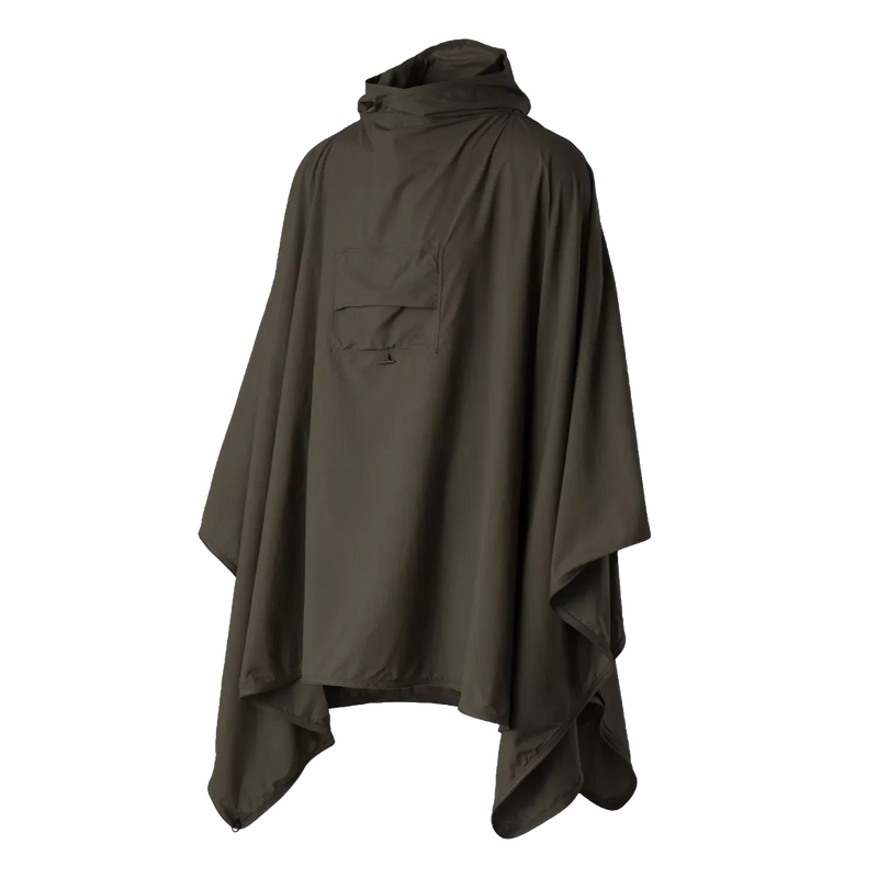 - 🦺 Poncho & Jacke: Entfaltet wird er zum Poncho mit Kapuze; die Seiten geschlossen, dient er als leichte Jacke.