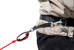 • Zugseil-Führung: Frontloch mit mittiger Öse; die Zugleine wird am Rucksack befestigt (optimaler Zugwinkel & Gleitverhalten).