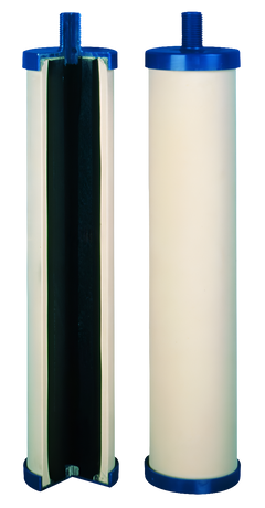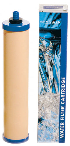 Das Katadyn Superdyn ist ein Zweistufen-Filterelement bestehend aus mikroporöser Keramik und einem Hochleistungs-Aktivkohleblock. Schwebstoffe und Bakterien werden ohne Einsatz von Chemikalien auf der Keramik-Oberfläche zurückgehalten. Der innere Aktivkohleblock adsorbiert nicht nur freies Chlor und andere organische Schadstoffe die für unangenehmen Geschmack und Geruch verantwortlich sind, sondern reduziert auch den Gehalt an Blei und anderen Schwermetallen. Durch die sehr große Innenoberfläche des Aktivkohleblocks kann das Filterelement 6 Monate lang verwendet werden. Der Keramikfilter wird durch lebensmittelechte Kunststoffkappen geschützt. Das in der Keramik fest verankerte Katadyn-Silber verhindert das Wachstum von Bakterien im Filter.