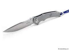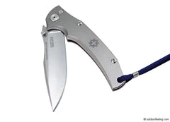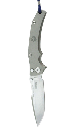 SBG 1 ist ein Klappmesser für den Gentleman mit taktischen Ansprüchen. Formschön und elegant überzeugt das Design des deutschen „Tactical Experten“ Dietmar Pohl nicht nur optisch, es liegt auch äusserst gut in der Hand. Die Formgebung der Titanschalen bietet zahlreiche Möglichkeiten, das Messer entsprechend dem Einsatz unterschiedlich in die Hand zu nehmen. Die Bauweise ist äussert robust und stabil, Klinge und Griffschalen sind etwas dicker als normalerweise bei Klötzli Klappmmessern; dies gibt dem Messer mehr Stabilität und lässt mehr Kraft bei der Benutzung zu. Die handgeschliffene Klinge aus Böhler N690 Stahl leistet hervorragende Schneidarbeit und bleibt Dank einem hohen Härtegrad (59 HRC) sehr lange scharf. Die Push-Button-Arretierung fixiert die offene Klinge und lässt sich äusserst leicht durch dru¨cken des Kopfes wieder lösen. Der Daumennocken ist auf beiden Seiten der Klinge leicht zugä