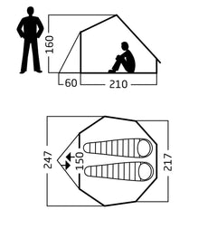 Größe Überzelt (LxBxH) : 210 x 246 x 160 cm