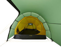 Dank der großen Apsis findest du ausreichend Raum zum Kochen, Lagern und für entspannte Abende im Zelt. Die aerodynamische Tunnelkonstruktion sorgt für beste Stabilität bei Wind und Wetter, während versteckte Gestängekanäle das Gewicht reduzieren und die Spannung optimieren.