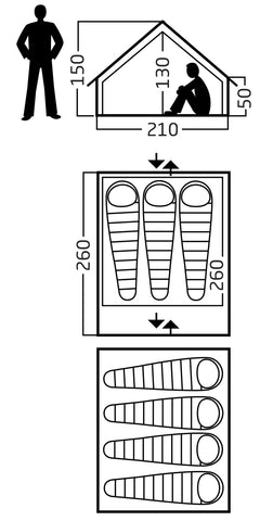 Eine wahres Familienzelt, das 4 Personen Platz bietet. Sehr einfach, mit einem Gestänge vorne und hinten aufzubauen. 2 große Eingänge bieten einen Panoramablick auf die Natur. Fenster auf jeder Seite mit Vorhängen, die von innen verstellbar sind. Eingenähter Boden, der am Haupteingang flach aufliegt für eine einfache Reinigung. Baumwollgewebe bietet ein hervorragendes Innenklima.