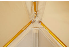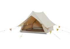 Der größte Vorteil von Ydun Tech Mini sind die neuen Gestänge. Die zwei leichten Aluminiumstangen bilden zwei A-Rahmen - einen über jedem Eingang - und gewährleisten vollen und ungehinderten Zugang zum Zelt ohne den üblichen, aber hinderlichen Mittelstange - inklusive Panoramaansicht.