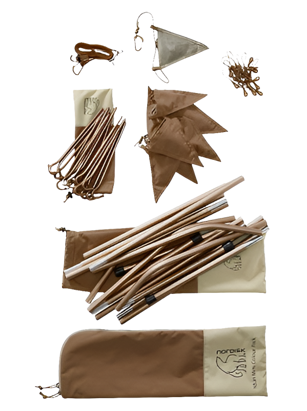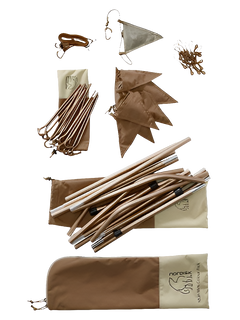 Die Ydun Tech Mini Color Packs enthalten alles, was du brauchst, um nicht nur dein Ydun Tech Mini Zelt aufzubauen, sondern es auch zu Deinem ‚eigenen‘ Ydun Tech Mini zu machen. “Colour my Adventure”: jedes Colour Pack enthält alle Gestänge, alle Heringe und Abspannleinen in deiner ausgewählten Farbe. Ebenfalls enthalten sind coole farbige Reißverschlüsse und zwei Wäscheleinen zum Aufhängen von leichter Ausrüstung und Kleidung innerhalb oder außerhalb des Zeltes. Die Stangen, inkl. des A-Rahmens, sind aus leichtem Aluminium, ebenso wie die stabilen Heringe. Die Stangen und Heringe sind in kleinen Einzeltaschen verpackt, so dass du sie auch einzeln tragen könntest. Alle Abspannleinen sind mit einem Minihaken, einem Dreieckslider und einer dreieckigen Netztasche ausgestattet. Sie können als zusätzliches Abspannseil für mehr Sicherheit dienen.
