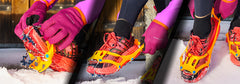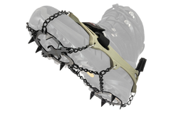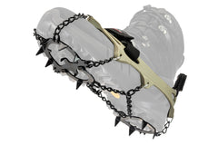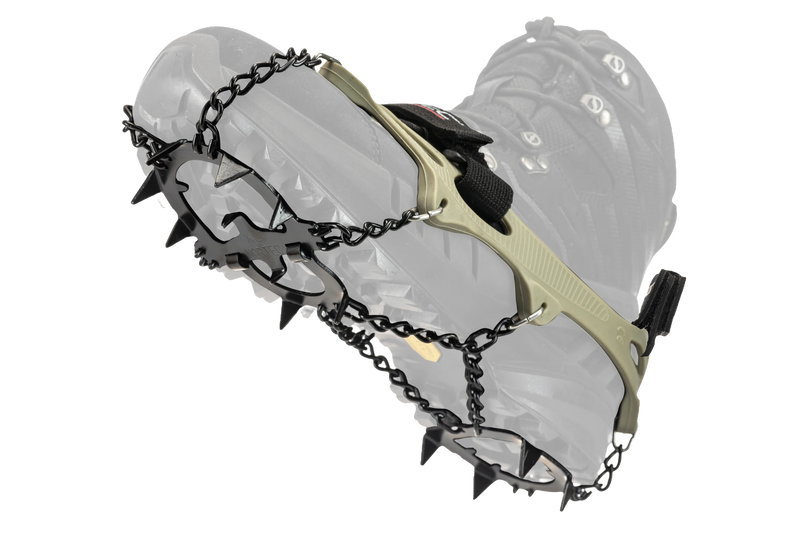 - 13 Spitzen mit unterschiedlicher Länge (7 bis 17mm) für optimalen Grip in den unterschiedlichen Einsatzbedingungen, die verbundenen Frontplatten verhindern die Ansammlung von Schnee und Eis in den Schuhkrallen und unter der Sohle.