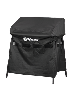 Egal, ob du den Windschutz aufgeschraubt hast oder nicht, in beiden Fällen ziehst du die passende Hülle einfach über den Tisch – mehrere Klettverschlüsse sorgen für einen starken Halt. Damit die Abdeckhaube nicht verrutscht, kannst du sie an den Bändern festziehen. Bei Bedarf säuberst du die Schutzhülle mit Spülmittel und einem feuchten Tuch. So befinden sich Gastisch und Feuertopf Tisch unter der schwarzen Hülle mit dem Petromax-Logo in guten Händen und sind stets für ihren nächsten Einsatz beim Grill-Abenteuer bereit.