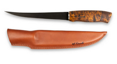 Gefertigt in Harmoinen, Finnland, steht dieses Messer für nordische Handwerkskunst und außergewöhnliche Qualität. Die Klinge aus Premium-Carbonstahl überzeugt durch enorme Schärfe, Härte und langanhaltende Schneidleistung. Der ergonomische Griff aus gebeizter Maserbirke, geölt mit Leinöl, bietet selbst bei Nässe einen sicheren Halt. Jede Klinge wird traditionell von Hand geschmiedet, geschärft und finalisiert.