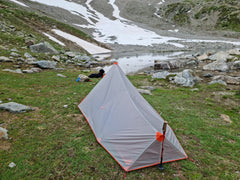 Im Gegensatz zu den meisten geformten Tarps kann das SplitWing dank seiner vorderen Flügel mit dem vorderen Trekkingstock zwischen 105 cm und 120 cm aufgestellt werden, sodass Sie bei niedriger Neigung die Bodenfläche und den Sturmschutz priorisieren oder bei hoher Neigung großzügige Kopffreiheit bieten können. Es ist am Fußende geschlossen, um Zugluft zu reduzieren und den Wetterschutz zu erhöhen.