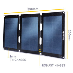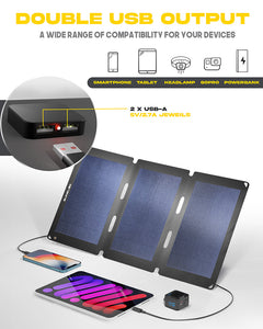 Die fortschrittliche CIGS-Solartechnologie sorgt für hohe Effizienz bei geringem Gewicht. Eine kratzfeste, wasserabweisende ETFE-Beschichtung schützt die Solarzellen zuverlässig, selbst unter extremen Outdoor-Bedingungen. Das Solarpanel lädt die große Powerbank schnell auf – ideal für den Betrieb von Smartphones, Tablets, GPS-Geräten und mehr.