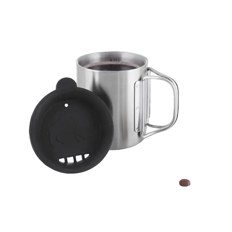 Der Tatonka Thermo 250 ist ein kompakter doppelwandiger Thermobecher aus Edelstahl mit 250 ml Fassungsvermögen. Dank klappbarem Henkel integrierter Volumenskalierung und mitgeliefertem Deckel eignet er sich ideal für Camping Trekking Festivals und den täglichen Outdoor Einsatz.