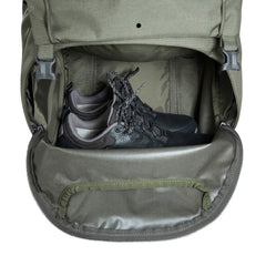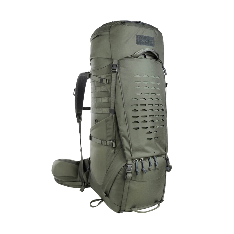 Die Front, Seiten und eine Hüftflosse sind mit einem voll Molle-kompatiblen Befestigungssystem ausgestattet, sodass Zusatztaschen aus dem Tatonka Bushcraft-Sortiment oder anderer MOLLE-Ausrüstung mühelos angebracht werden können. Das Außenmaterial besteht aus widerstandsfähigem CORDURA® 500 den Eco und ist komplett PFC/PFAS-frei ausgerüstet.