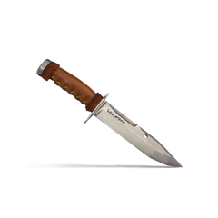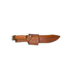 Es wird geliefert mit einem Lederetui für vertikales Tragen, bestehend aus einer Gürtelschlaufe und Scheide für den sicheren transport des Messers.