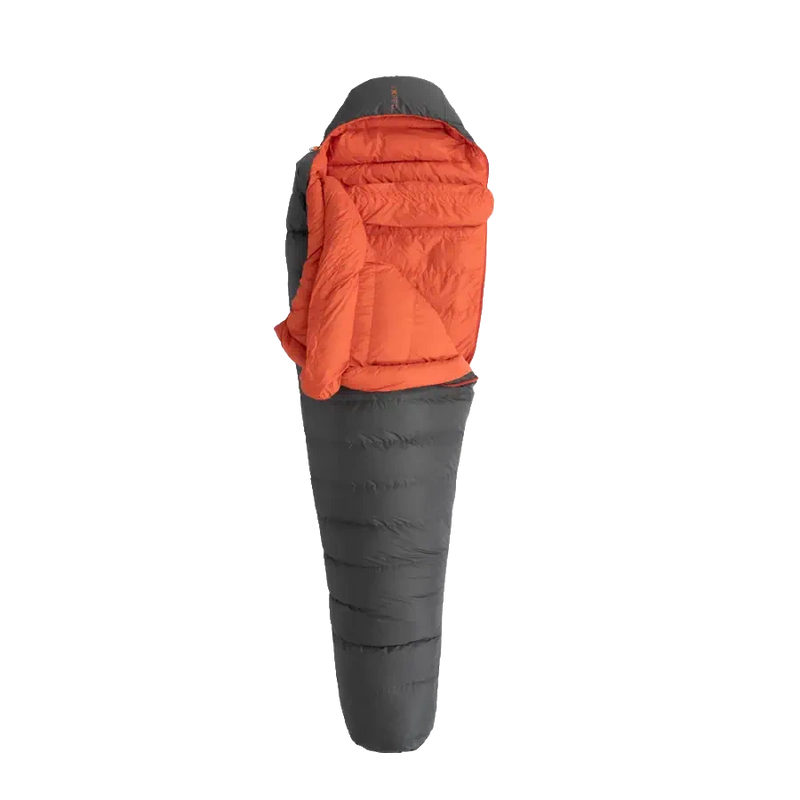 Die ergonomische Mumienform, der Differenzialschnitt sowie die 3D-Fussbox mit daunengefüllten Kammern sorgen für hohe Wärmeleistung und warme Füsse. Der aktive Wärmekragen und die isolierte Reissverschlussabdeckung reduzieren Wärmeverlust auf ein Minimum.