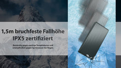 - Wasserbeständigkeit: IPX5 (spritzwassergeschützt)