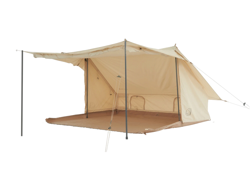 Mit der neuen Nordisk SKY-Öffnung erlebst du eine ganz neue Seite des klassischen Nordisk-Baumwollzeltes. Indem du einfach den Boden vom Außenzelt abnimmst und die Ecken abspannst, kannst du eine einladende offene Fläche schaffen.