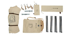 Ydun lässt sich ganz einfach aufstellen und das atmungsaktive Baumwollgewebe sorgt für eine tolle und angenehme Schlafumgebung. Bei geschlossenem Zustand, bietet Ydun SKY einen doppelten Türeingang an jedem Ende für einen einfachen Zugang und gleichzeitig eine großartige Belüftung und Aussicht nach draußen. Die Fenster sind mit Moskitonetzen versehen und können mit kleinen Vorhängen geschlossen werden. Ydun hat praktischerweise einen eingebauten Zeltboden, der sich am Haupteingang einfach zusammenfalten lässt. Eine angepasste Innenkabine ist als Zubehör erhältlich.