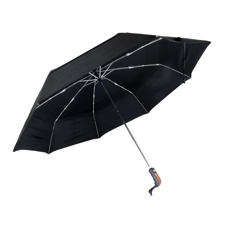 - Stilvoll und ergonomisch: Der Griff ist gummiert, liegt angenehm in der Hand und verleiht dem Schirm ein edles Erscheinungsbild.