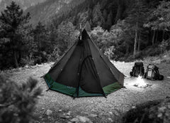 Das Zelt besteht aus einem langlebigen Baumwoll-Polyester-Canvas, das dank DWR-Imprägnierung wasserabweisend ist und ein angenehmes Innenklima ermöglicht. Der robuste 500D Cordura® Boden mit 10.000 mm Wassersäule macht das Alp ideal für feuchte, unebene oder rauere Untergründe. Durch Tür, vier Fenster und einen zusätzlichen Notausgang ist das Zelt besonders flexibel, sicher und praktisch.